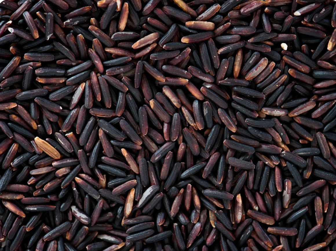 El seu color fosc no és només una particularitat estètica. Es deu a la presència d’antocianines, compostos antioxidants també presents en fruites com els nabius. A diferència d’altres cereals refinats, l’arròs negre conserva el segó —la capa externa del gra—, on es concentren bona part d’aquests nutrients.