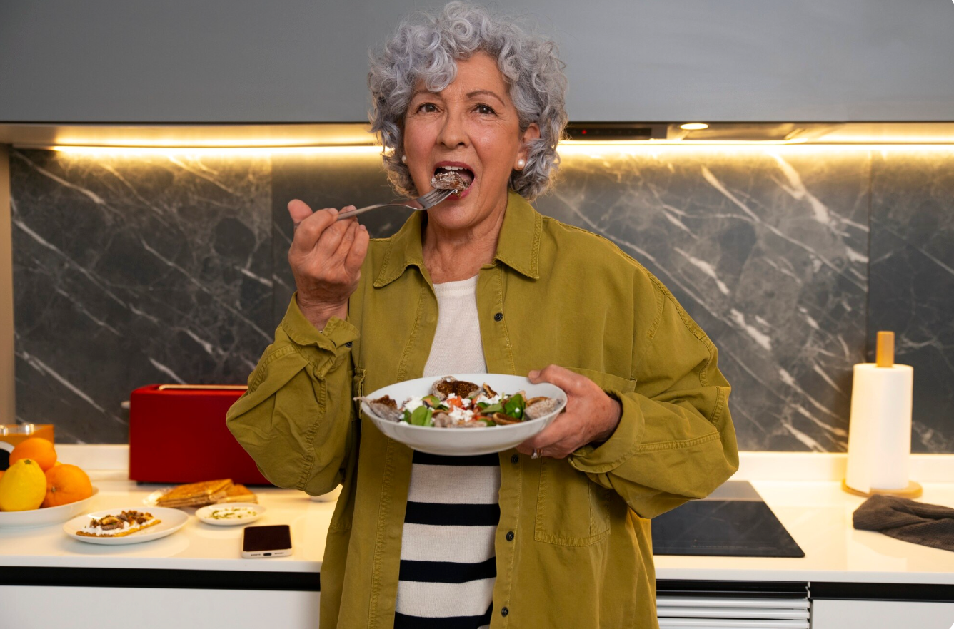 Obón recomana una dieta equilibrada, variada i moderada en greixos saturats. Les racions han de ser iguals o lleugerament inferiors a les de l’etapa adulta, i convé controlar els sucres lliures i/o afegits. Com a fonts principals d’hidrats de carboni, aconsella els cereals integrals, els llegums i les patates. Quant a les proteïnes, suggereix prioritzar el peix per davant de la carn i augmentar les proteïnes vegetals. En aquesta etapa, “els llegums són un aliment essencial“, pel seu contingut en proteïnes, fibra i fitoestrògens, amb baixa aportació de greixos saturats.
