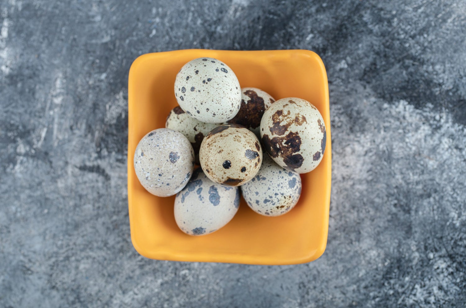 Paral·lelament, en un cassó amb aigua bullent i un toc de vinagre, es bullen els ous de guatlla durant dos minuts i mig, obtenint així un rovell lleugerament cremós. Tot seguit, es refreden en aigua amb gel i es pelen amb delicadesa.