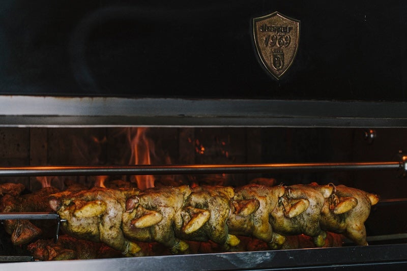 Aquest negoci, que ara ja compta amb tres establiments a Barcelona, es va iniciar al número 39 del carrer Santaló, al barri de Sant Gervasi-Galvany, en un petit local de tot just 40 metres quadrats, on s’oferia una nova versió del pollastre a l’ast. Aparentment no canviava res respecte dels que ja hi havia fins aleshores a Barcelona, però en realitat era una revisió profunda de com cuinar aquest plat. El secret? Primer de tot la matèria prima: uns pollastres de proximitat -els que es coneixen com a pollastres grocs catalans-, d’un pes de 1,1 kg i alimentats a base de cereals. Després, la manera de cuinar-los: untar els pollastres amb una barreja de vi ranci i herbes seques i farcir-los amb alls, llimona i herbes aromàtiques fresques. Aquests pollastren es cuinen en un rostidor de pollastres a base de carbó fabricat per la prestigiosa marca Josper a 150-160 graus durant 90 minuts.