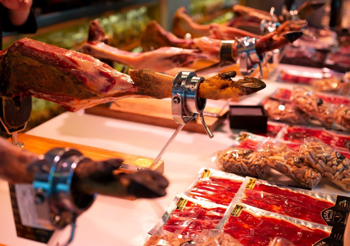 Una de les ensenyes que formen part d’aquest selecte grup de botigues especialitzades, sobretot en pernils ibèrics, és Reserva Ibérica. Una empresa creada per Manuel López, un dels grans experts en pernil ibèric de casa nostra, que va créixer entre pernils a la parada que tenien els seus pares al mercat de La Boqueria i que, després d’exercir una trajectòria professional fora d’aquest sector, va decidir tornar a les seves arrels i seguir amb el llegat familiar. En Manuel, qui ha tallat més de 30.000 pernils a la seva vida, es defineix com un “afinador de pernils”, ja que mira d’oferir un tracte gairebé individualitzat a cada peça per aconseguir el millor pernil possible als seus clients.