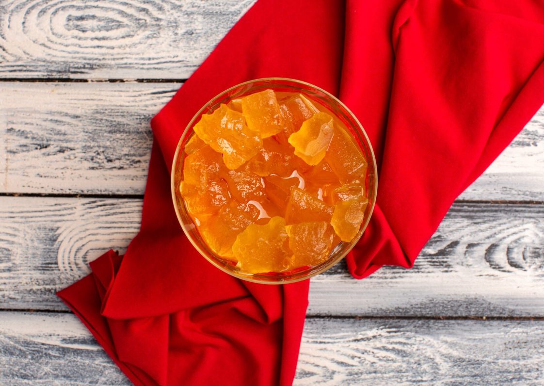 Les gelees, menys conegudes però igualment interessants, són elaboracions transparents i brillants que s’obtenen a partir del suc de la fruita, sense polpa. El resultat és una textura més fina i delicada, amb un sabor més subtil.