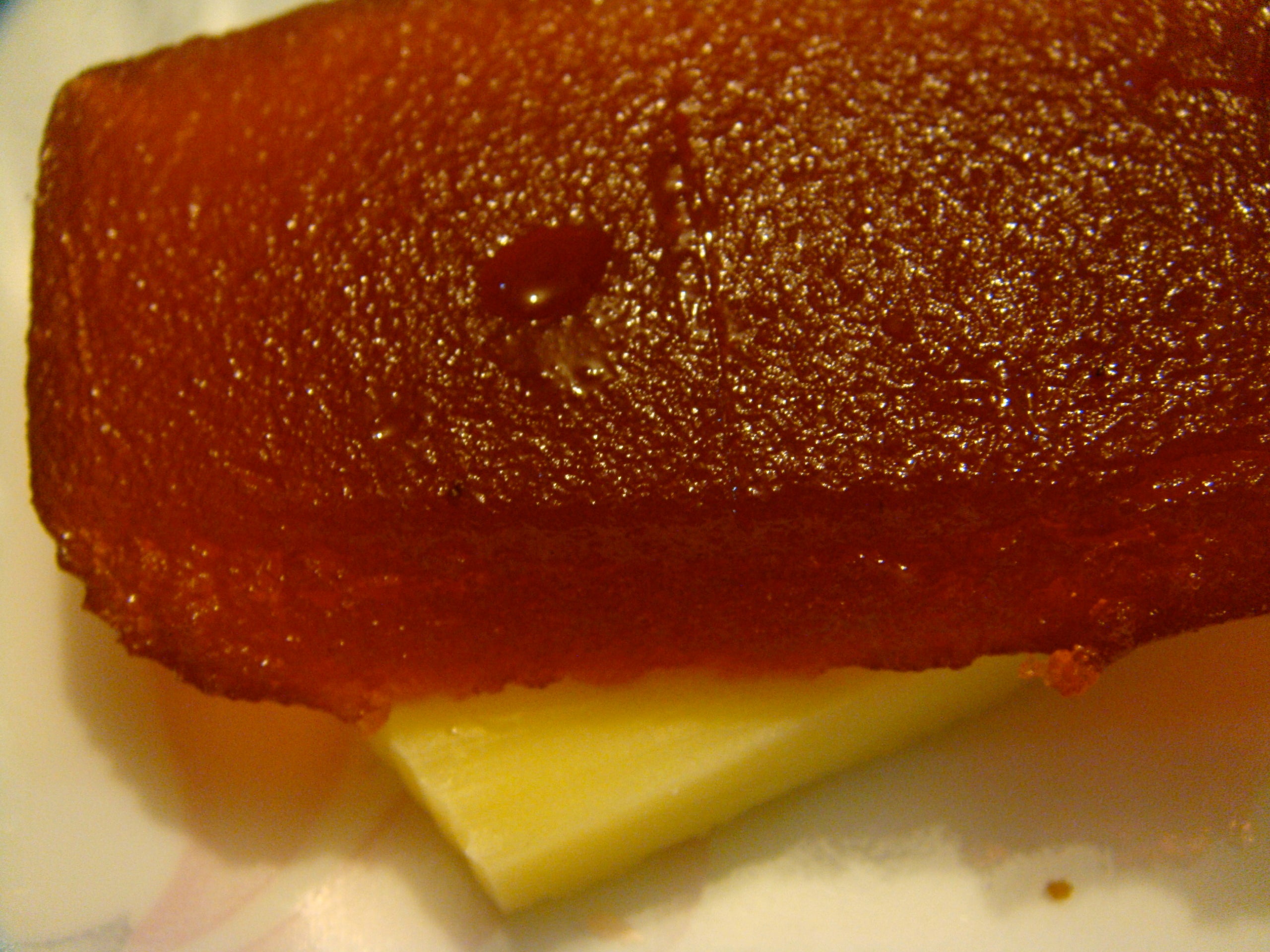 Tot i que tradicionalment s’ha consumit amb formatge o com a acompanyament, el seu potencial en rebosteria és enorme. Tallat a daus petits, pot incorporar-se a coques, pastissos o iogurts. També es pot fondre lleugerament per crear capes dolces en postres més elaborades.
