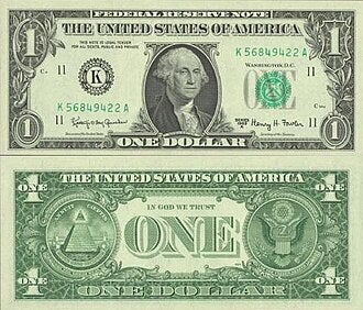 Maçoneria i dòlar: E pluribus unum (Out of many, one, com a lema) extret del poema del Moretum. L’emulsió del divers convertida en Déu monetari de la mà, pot ser, de Benjamin Franklin.