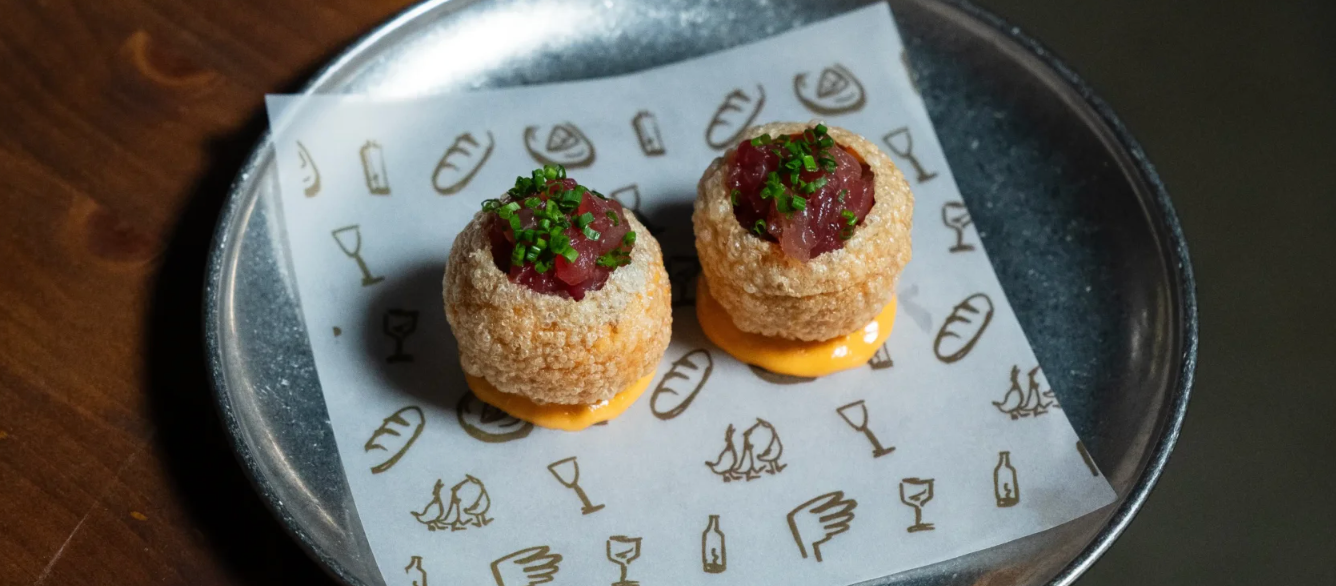 Entre els bestsellers, destaca el brioix de gamba, un plat que juga amb el concepte de la gírgola de gamba però traslladat a un brioix fregit, cruixent i intens, on mar i greix dialoguen amb naturalitat. També tenen molt èxit els tacos de costella i els fideus a la cassola amb gamba i costella, una recepta profundament catalana que connecta directament amb la memòria gustativa del país i que el públic demana una vegada i una altra.