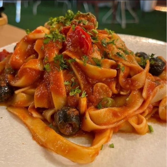 Tot comença amb una selecció d’antipasti pensats per compartir, com és el vitello tonnato, tendre i ben equilibrat. Els primers plats, especialment les pastes, són un capítol a part. Aquí tot és fresc i elaborat a casa: des de les làmines dels raviolis fins a les cintes de les tagliatelle. Dins la carta de pasta fresca all’uovo, destaquen els raviolis de tòfona o la tagliatelle alla puttanesca, i també els gnocchi alla sorrentina. Si prefereixes pizza, aquest restaurant també les fa de categoria. El forn de llenya no sempre està actiu, però quan ho està, ofereix des de la clàssica Margherita fins a opcions gourmet com la de mortadel·la trufada amb pistatxo.
