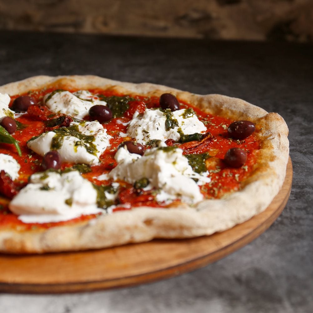 El secret del local comença a la massa. Fermentada durant 72 hores, treballada amb temps i paciència, dona com a resultat una pizza que no pesa, que no deixa rastre feixuc a la digestió. És una d’aquelles pizzes que venen de gust al vespre, quan asseure’s tranquil·lament i fer una bona mossegada és gairebé un ritual. La massa, plena de bombolles d’aire, lleugera i elàstica, es cou en forn de pedra i sosté ingredients de qualitat sense perdre protagonisme. El sabor, això sí, no és gens efímer.