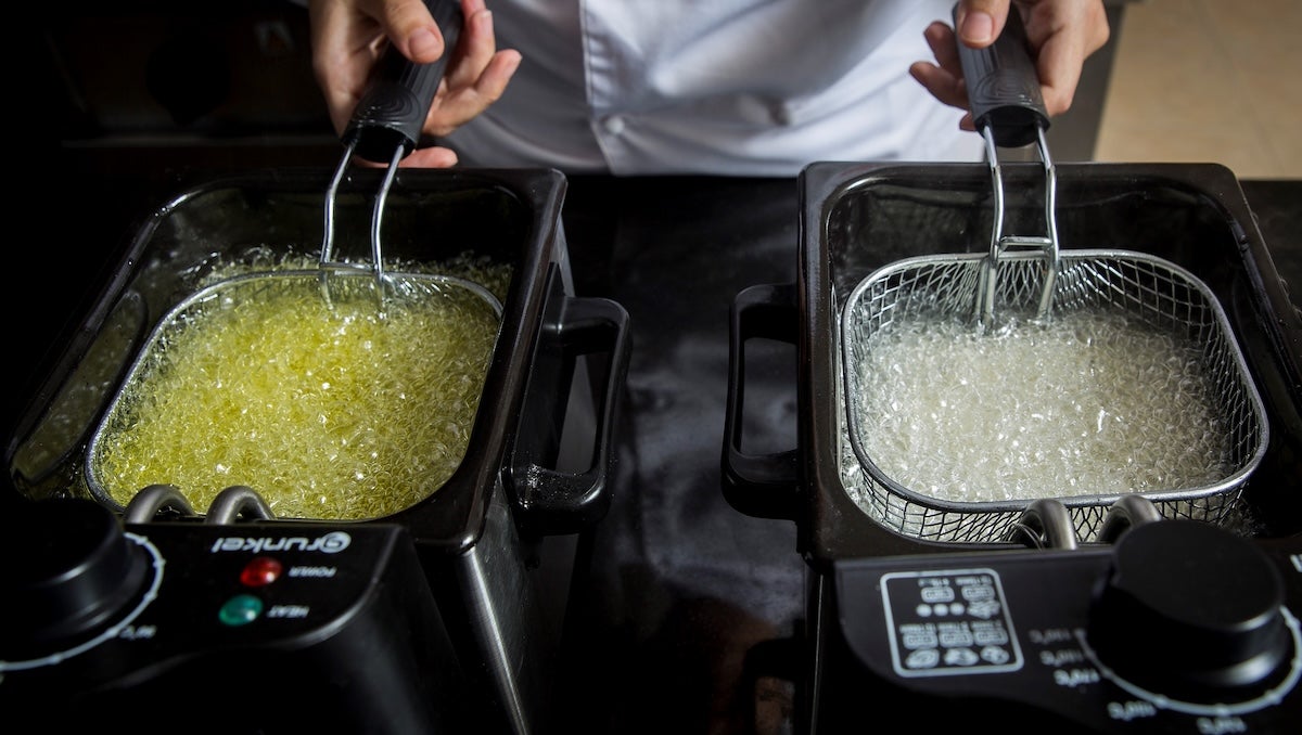 La funció de l’oli en aquest cas és aconseguir que el nostre producte assoleixi una temperatura superior a 100ºC a l’exterior de l’aliment de manera ràpida i, així, es forma una crosta perfecta i l’oli absorbit transmet sabor a l’aliment fregit.