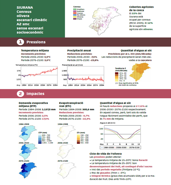 Els resultats que es van obtenir mostraren com, al llarg del segle XX,I a les regions oleícoles destacades, com la DOP Siurana (Tarragona), la DOP Empordà (Girona) i la DOP les Garrigues (Lleida), les necessitats hídriques de l’olivera s’han incrementat per l’increment en l’evaporació, que no podrà ser compensada degut a la igual o menor precipitació i, per tant, la reducció de la disponibilitat d’aigua edàfica, el que ha generat dèficits hídrics en arbres i fruits.